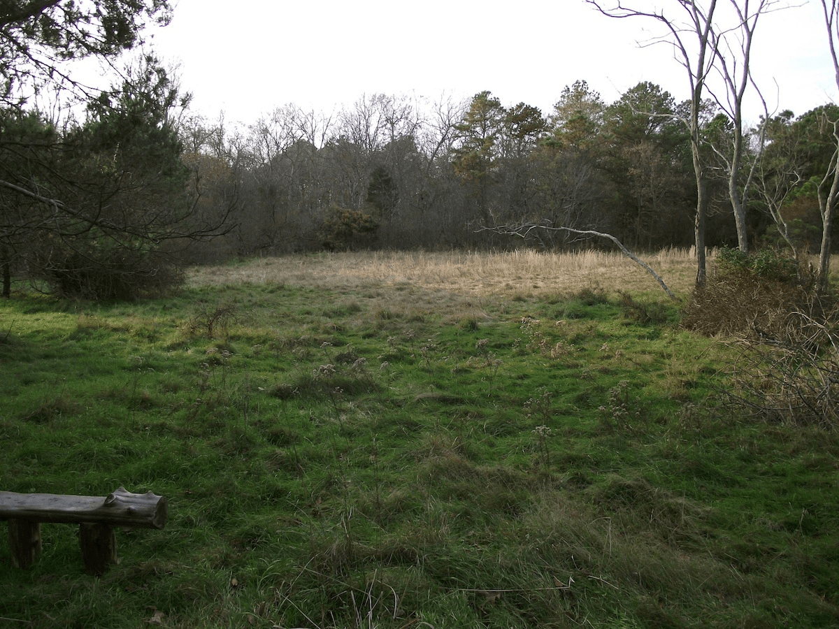 A grassy field, possibly an old farm field, along the Paumanok Path and Yellow trails